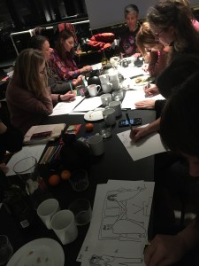Bagefter skal vi selv udfolde os i selvsamme medie og indenfor samme tema. Hvis I har, må I meget gerne tage egne farveblyanter med.